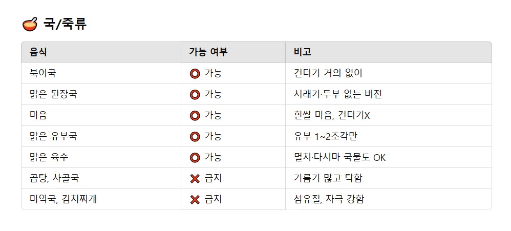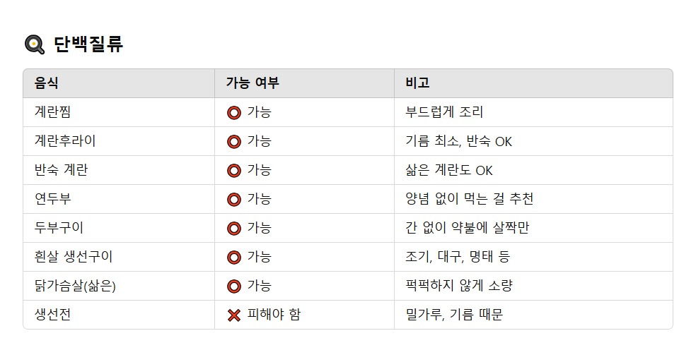 - 자극 없는 조리법 (구이, 삶기, 찜 위주)