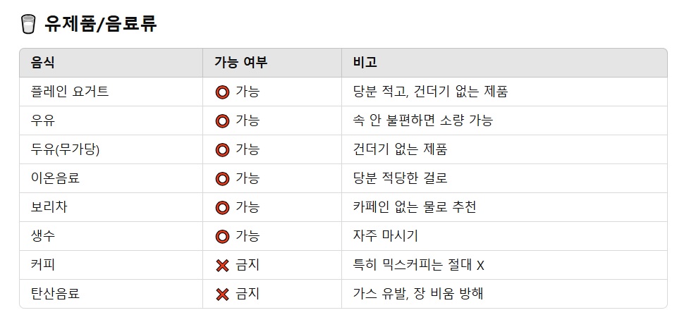- 탈수 유발 + 수면내시경 약물과 충돌할 수 있기 때문이에요