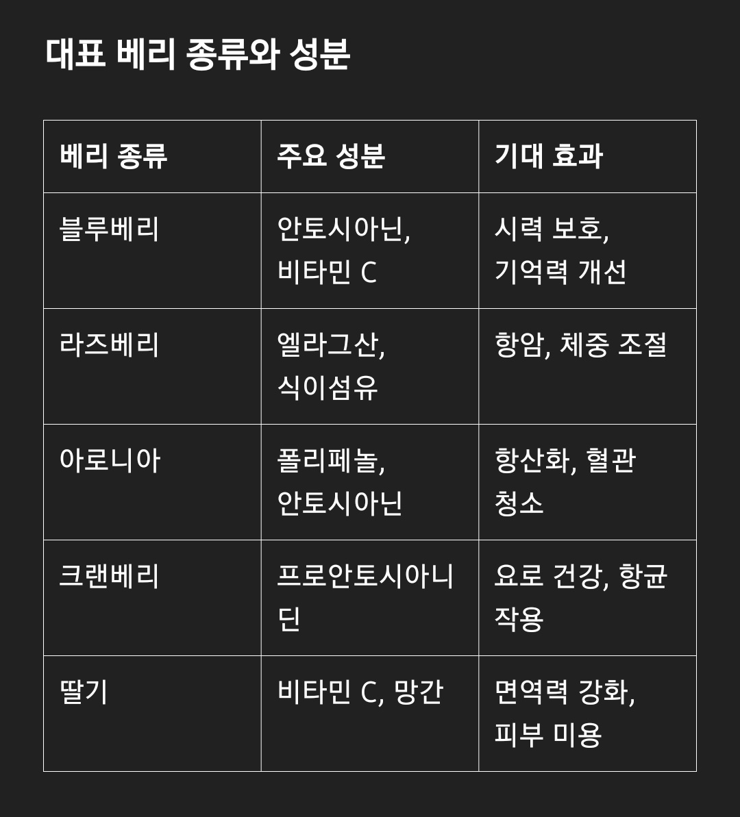 대표 베리 종류와 성분